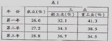 2.(09•山东文综13)表1反映了我国某一时期农业、轻工业和重工业在工农业总产值中所占比重的变化情况。该时期是 ( )