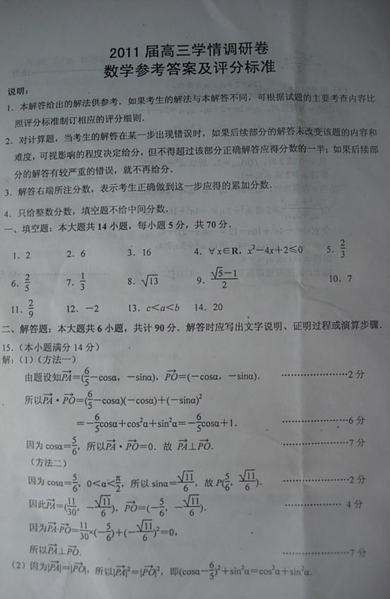 2011届高三学情调研卷
