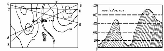 29.下图中右侧的地形剖面图是根据左侧的等高线地形图的某条剖面线画出的,它是( )