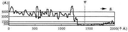 (二)读“我国某地区沿某一纬线的地形剖面示意图”,判断回答4-6题。