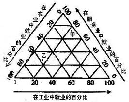 20.甲、乙表示不同城市化阶段的就业比重状况,下列组合较合理的是          (   )