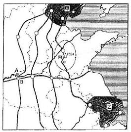 39.图中甲、乙两阴影区是我国著名的工业区,目前两工业区之间的货物运输主要通过(线)铁路及海洋运输,即将开建的高速铁路将大大缩小两区域之间的联系空间。