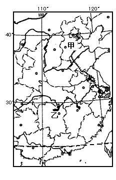 图中甲位于华北平原,乙位于长江中下游平原。读图回答1-4题。