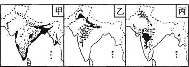 下图代表南亚三种主要农作物的分布图,读图回答9-10题。