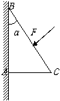 9、如图所示,质量为m、横截面为直角三角形木块ABC,∠ABC=α,AB边靠在竖直墙上,F是垂直于斜面BC的推力,现物块静止不动,则摩擦力大小为 。