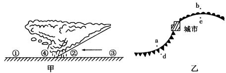 A.甲图中①地气温最高 B.乙图中的城市天气晴朗