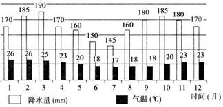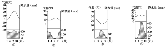下图表示世界四个地点的气温降水状况。据此完成22-23题。