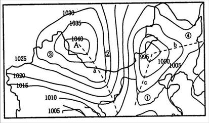 (4)图中①②③④地中,风速最大的是______,判断的理由是______________(3分)