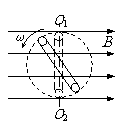 当闭合线圈由中性面位置(右图中O1O2位置)开始在匀强磁场中匀速转动时,线圈中产生的感应电动势随时间而变的函数是正弦函数:e=Emsinωt,其中Em=nBSω,这就是正弦交变电流。