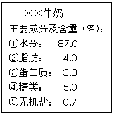 22.(4分)右图为某品牌牛奶的部分标签,请据此回答下列问题 [第(2)-(4)题用标签中的序号填写]: