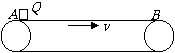8.如图所示,水平传送带以不变的速度v向右运动。将质量为m的物体Q轻轻放在水平传送带的左端A处,经t秒,Q的速度也变为v,再经t秒到达右端B处,则( )