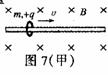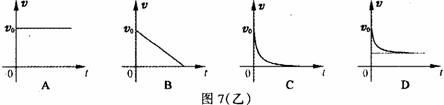 9.如图7(甲)所示为一个质量为m、带电荷量为+q的圆环,可在水平放置的足够长的粗糙细杆上滑动,细杆处于磁感应强度为B的匀强磁场中. 现给圆环向右初速度v0,在以后的运动过程中,圆环运动的速度图象可能是图7(乙)中的