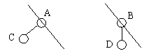 两滑杆上分别套A、B两圆环,两环上分别用细线悬吊着两物体C、D,如图所示,当它们都沿滑杆向下滑动时,A的悬线始终与杆垂直,B的悬线始终竖直向下,则: