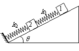 14.如图所示, 在倾角为θ的光滑斜面上放有两块小木块, 劲度系数为k1的轻质弹簧两端分别与质量为m1和m2的物块1、2拴接, 劲度系数为k2的轻质弹簧上端与物块2拴接,下端压在挡板上(不拴接),整个系统处于平衡状态.现施力将物块1缓慢沿斜面向上提,直到下面那个弹簧的下端刚脱离挡板.在此过程中,下列说法正确的是