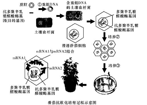 (4)从图中可见,mRNA1和mRNA2的结合直接导致了 无法合成,最终使番茄获得了抗软化的性状。
