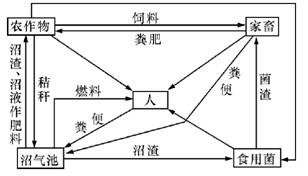 45.(7分)1985年前,某地农村农作物秸秆都是当作燃料,而农户和家畜的粪便等均作为肥料直接施入农田。后来逐步开始进行农村产业结构调整,下图是2006年时当地生态工程示意图。