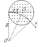 带电粒子在长足够大的长方形磁场中的运动时要注意临界条件的分析。如已知带电粒子的质量m和电量e,若要带电粒子能从磁场的右边界射出,粒子的速度v必须满足什么条件?这时必须满足r=mv/Be>d,即v>Bed/m.