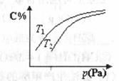 平衡时C的体积分数与温度和压强的关系如图所示,下