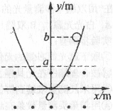 ,下半部处在一个水平方向的匀强磁场中,磁场的上边界是y=a的直线(图中虚线所示)。一个小金属环从抛物线上y=b(b>a)处以速度v沿抛物线下滑。假设抛物线足够长,则金属环沿抛物线下滑后整个过程中产生的焦耳热总量是
