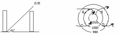 30.北半球某城市,冬至日时正午太阳高度为45°(如下图1),为保证建筑物底层居室