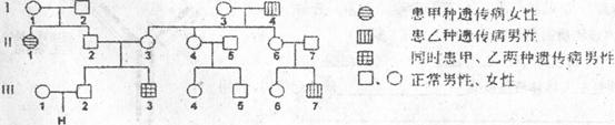 (3分)下图为甲种遗传病(基因为A、a)和乙种遗传病(基因为B、b)的家系图。其中一种遗传病基因位于常染色体上,另一种位于X染色体上。请回答以下问题(概率用分数表示)。