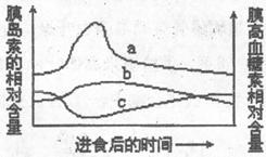 (2)左图中,三条曲线分别表示进食后血液中胰岛
