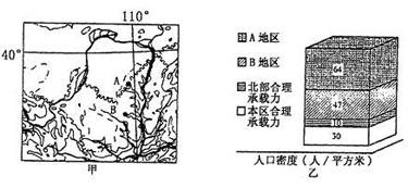 A.人口密度超过该地区合理承载力 B.A地区的人口密度高于B地区