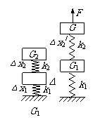 加拉力F时 Δx1/=G2/k1,Δx2/= (G1+G2) /k2,(Δx1/、Δx2/为伸长量)