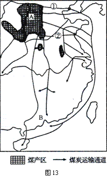 ⑴从图中看产煤区A的煤炭外运主要依靠的运输方式是