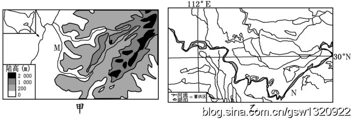 (1)甲图中的M河是 ,乙图中的N河是 。 (2)M河流域进行综合开发的核心是梯级开发,原因是什么?
