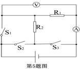5.在如图所示的电路中,电源电压恒为6V,当开关S2断开,S1 、S3闭合时,电流表示数为0.6A,R1的电阻是________Ω. 当开关S2闭合,S1 、S3断开时,电压表的示数为2V,则R2的电功率为______W.