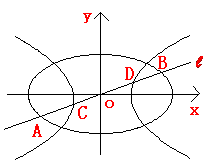 y=kx+b,如图所示,l与椭圆、双曲线的交点为: