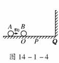 2.在光滑的水平面上,质量为m1的小球A以速率v0向右运动.在小球A的前方O点有一质量为m2的小球B处于静止状态,如图14-1-4所示.小球A与小球B发生正碰后小球A、B均向右运动.小球B被在Q点处的墙壁弹回后与小球A在P点相遇,PQ=1.5PO.假设小球间的碰撞及小球与墙壁之间的碰撞都是弹性的,求两小球质量之比m1∶m2.
