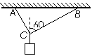 (6分)如图,用绳AC和BC吊起一重物,绳与竖直方向夹角分别为30°和60°,AC绳能承受的最大的拉力为150N,而BC绳能承受的最大的拉力为100N,求物体最大重力不能超过多少?