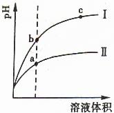 A.Ⅱ为盐酸稀释时pH值变化曲线![]()