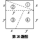 20.如图,将正方形沿图中虚线(其中x<y)剪成①②③④四块图形,用这四块图形恰
