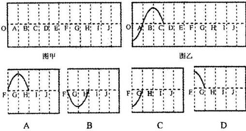 1.(2008年南宁市高中毕业第二次适应性测试)如图甲中有一条均匀的绳,O、A、B、C…依次是绳上一系列等间隔的点。现有一列简谐横波沿此绳向右传播,t1=0时,波刚好到达质点O,t2=0.3s时,波刚好到达质点C,并形成如图乙所示的波形。在下列四幅图中能够正确表示,t3=0.8s时的波形(其中一部分)的是( )
