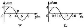 3.(2008年贵州省普通高等学校招生适应性考试)如图甲是一列波某时刻的波形图,图乙是从该时刻起记录到P质点的振动图象,结合两图分析可知( )