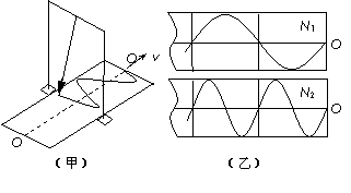 (2008年5月海淀高三物理二模)如图(甲)所示是用沙摆演示振动图象的实验装置,沙摆的运动可看作简谐运动,实验时在木板上留下图示的痕迹。图(乙)是两个沙摆在各自板上形成的曲线,若板N1和板N2拉动的速度v1和v2的关系为v2=2v1,则板N1和板N2上曲线所代表的振动周期T1和T2的关系为( )