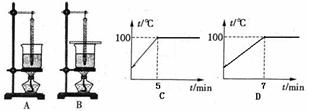 ⑵两组同学绘制的沸腾图像如图C、D所示,对比发现,他们相同点是:沸腾前,对水加热,水的温度____________________(不断上升/保持不变/不断下降);沸腾时,水的温度______________________;他们不同点是_______________________________,