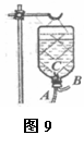 物理知识在生活中有广泛的应用,病人输液时用的吊瓶就是一例。如图9所示,A管是输液管、B管是空气管。在输液过程中,如果发现病人的血液沿输液管回流,可将吊瓶适当地升高,使流入患者血管处药液的压强变