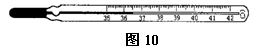 如图10所示,是生活中常用的体温计,请写出两点它在使用过程中运用到的物理知识。