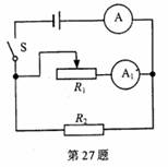 (5分)如图所示的电路中,R1为标有“20n,2A”字样的滑动变阻器,R2的阻值为l0Ω,当开关S闭合后,电流表④和A的示数分别为0.6A和1.5A.求: