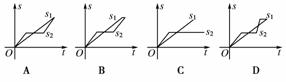 6.“龟兔赛跑”讲述了这样的故事:领先的兔子看着慢慢爬行的乌龟,骄傲起来,睡了一觉,当它醒来时,发现乌龟快到终点了,于是急忙追赶,但为时已晚,乌龟还是先到达了终点……,用S1、S2分别表示乌龟和兔子所行的路程,t为时间,则下图与故事情节相吻合的是( )
