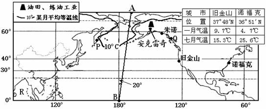 (3)连接东北亚与美国、加拿大西北部的航空线通常选择安克雷奇作为中转机场,选择这条飞行线路的理由是 。(4分)