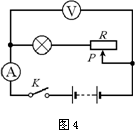 (3)、在如图4所示电路中,当闭合开关后,滑动变阻器的滑动片P向右移动时( )