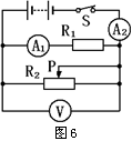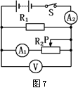 (5)、如图7,当滑片P向右移动时,A1表、A2表和V表将如何变化?