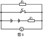 (6)、在如图9所示的电路中,当开关K断开时,电阻R1与