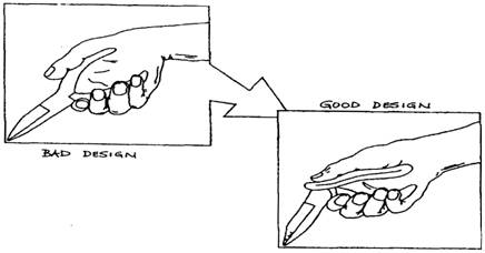 ●tools with handles that can be held comfortably by the whole hand. This means having a selection of sizes-remember that tools that provide a comfortable firm Hold for a person with a very large hand may be awkward for someone with a very small hand. This is a particularly important consideration for women who may use tools originally designed for men.