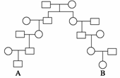 下面的系谱图中,A男子的奶奶和B女子的外公是表兄妹,根据我国婚姻法“直系血亲和三代以内的旁系血亲禁止结婚”的规定,可判断A男子与B女子
